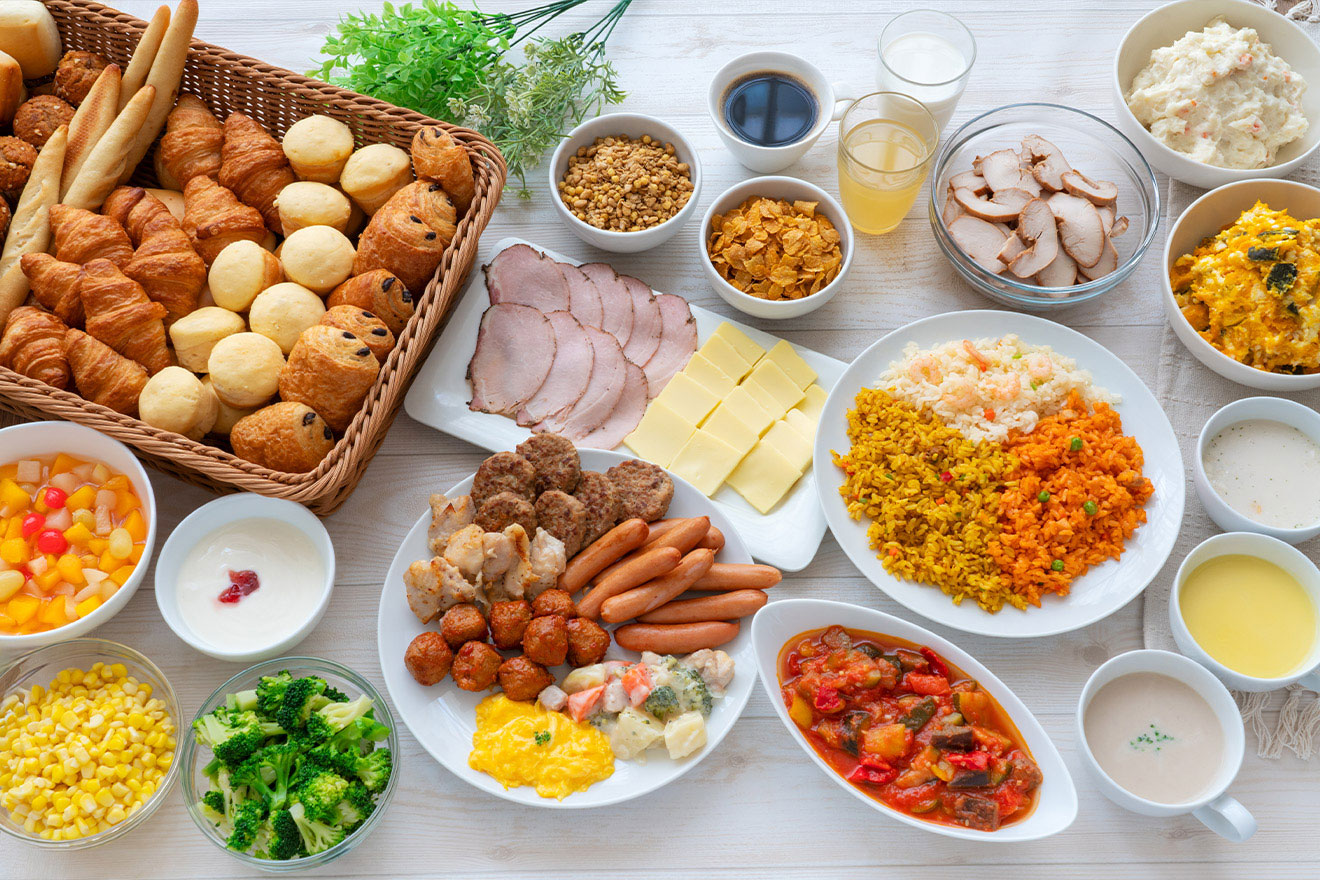バラエティに富んだ朝食ブッフェを