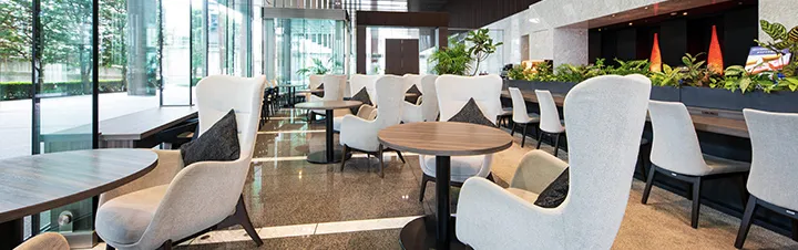 從“田町站”步行6分鐘。都營淺草線“三田站”也在步行圈內,去往機場 (羽田、成田) 和淺草方面的交通也十分便利。周邊作為辦公街發揮作用,附近有便利店和銀行,很方便。另外,位於離彩虹橋很近的地方,也有去臺場方向的巴士,最適合作為觀光據點。
