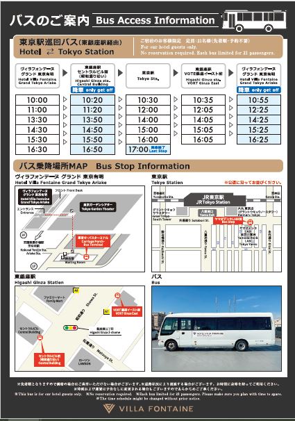 ① Yaesu street(Tokyo Station - via Higashi Ginza Station)⇔Villa Fontaine Grand Tokyo Ariake