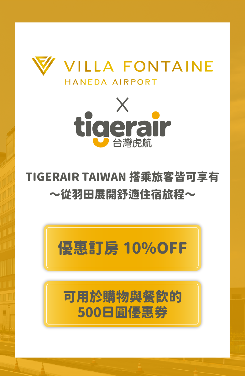 ※本優惠券僅限於「Villa Fontaine Grand 羽田機場」與「Villa Fontaine Premier 羽田機場」使用。