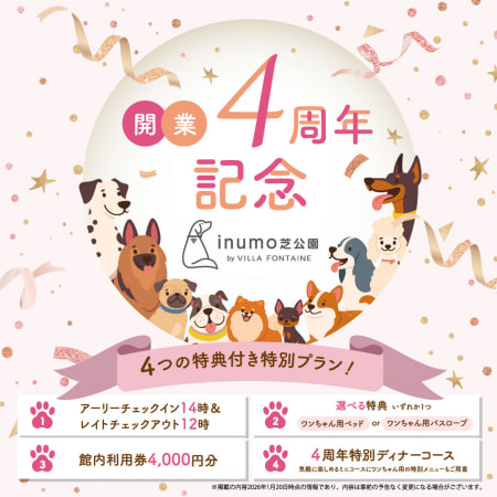 ワンちゃんがヨロコビ、飼い主様がシアワセな気持ちになれるように。inumo芝公園は、東京都心でワンちゃんと宿泊を楽しむためのホテルです。