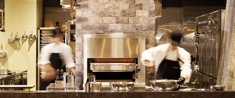 店内中央にあるオープンキッチンからご提供するメインのグリル料理から、お好きなものをお選びいただき、さらにサラダバーからお好きなだけお取りいただけるハーフブッフェスタイル。